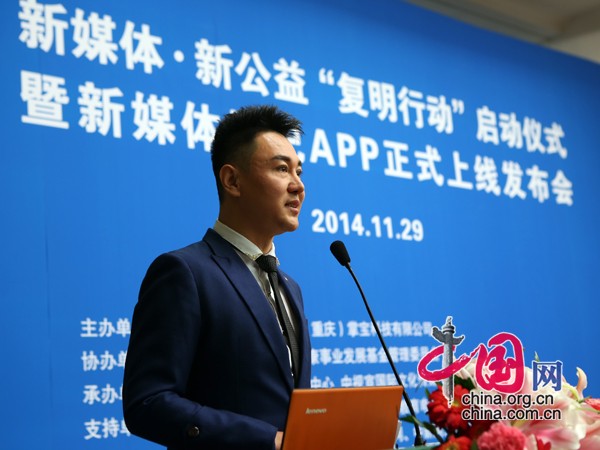 今天,怀着非常激动的心情,在这个神圣而庄严的地方,掌宝科技联合中国公益事业联合会、中国福利基金会,共同发起并举行新媒体新公益“搜巴复明行动”启动仪式暨搜巴APP正式上线发布仪式。首先,我谨代表掌宝科技向大家的到来表示最热烈的欢迎,同时也借此机会,向给予我们大力支持的主管部门、协助单位、新闻媒体、爱心人士表示衷心的感谢!