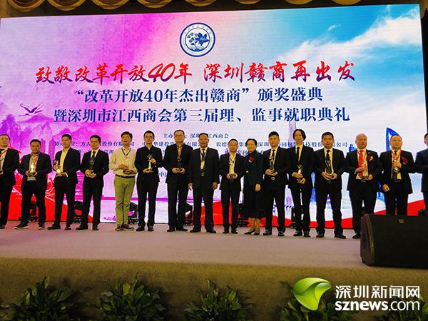 2018年12月8日,以“致敬改革开放40年,深圳赣商再出发”为主题的“改革开放40年深圳杰出赣商”颁奖盛典暨深圳市江西商会第三届理、监事就职典礼在深圳市福田区五洲宾馆举行,