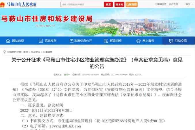 原标题:《马鞍山市住宅小区物业管理实施办法(草案征求意见稿)公开征求意见》