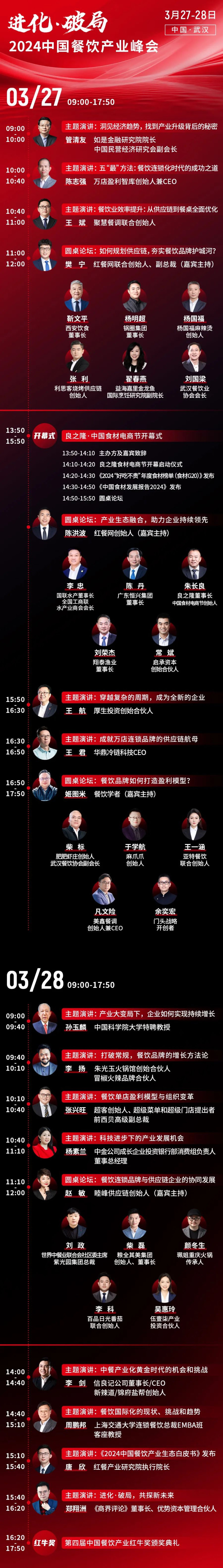 “2024中国餐饮产业峰会”汇集业内大咖,聚焦产业热点,致力于打造餐饮领域标杆活动,为中国餐饮产业发展提供强劲推力。3月27-28日,期待与您共享盛宴。