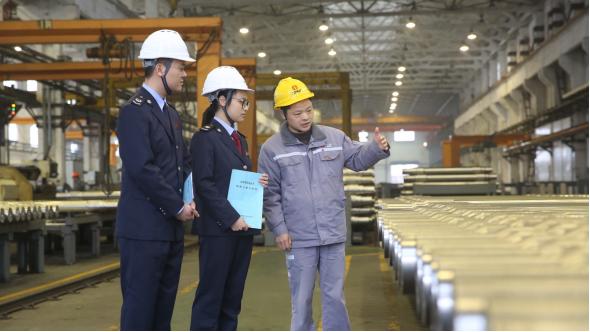 义安区税务局深入中车长江铜陵车辆有限公司帮助企业算好“减税降费账”,助力企业轻装前行。杜鸽 摄。