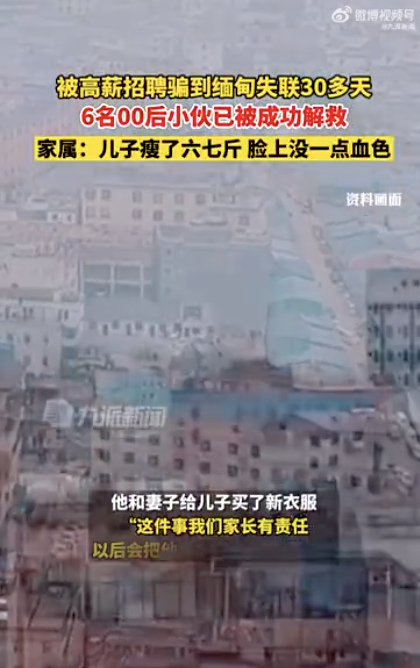 据新京报报道,6名青年被解救后,郑先生赶到派出所,见到了儿子小郑。“他看上去瘦了6、7斤,像变了一个人,脸青青的,没有一点血色。”郑先生告诉记者,儿子说自己被骗到缅北“被逼学电脑,做电信诈骗”,曾被看守的人用水管打过,但自己挨打比较少,有同伴曾被电棍殴打。