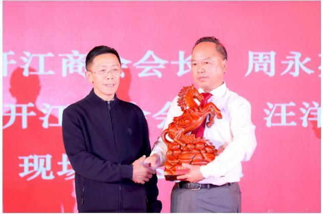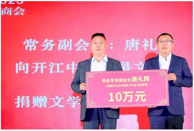 一篇《开江赋》揭幕庆典大会,回顾商会发展,展望未来。广东、重庆开江商会会长送上贺礼。常务副会长唐礼辉为开江中学新星文学社现场捐赠10万元文学活动经费。