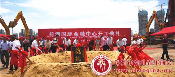 2015年7月10日上午,深圳市潮汕商会、潮商集团相关领导出席前海国际金融中心开工典礼。图为奠基仪式现场。