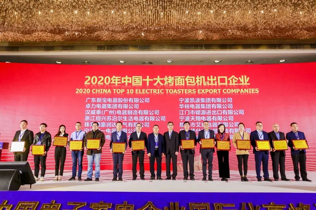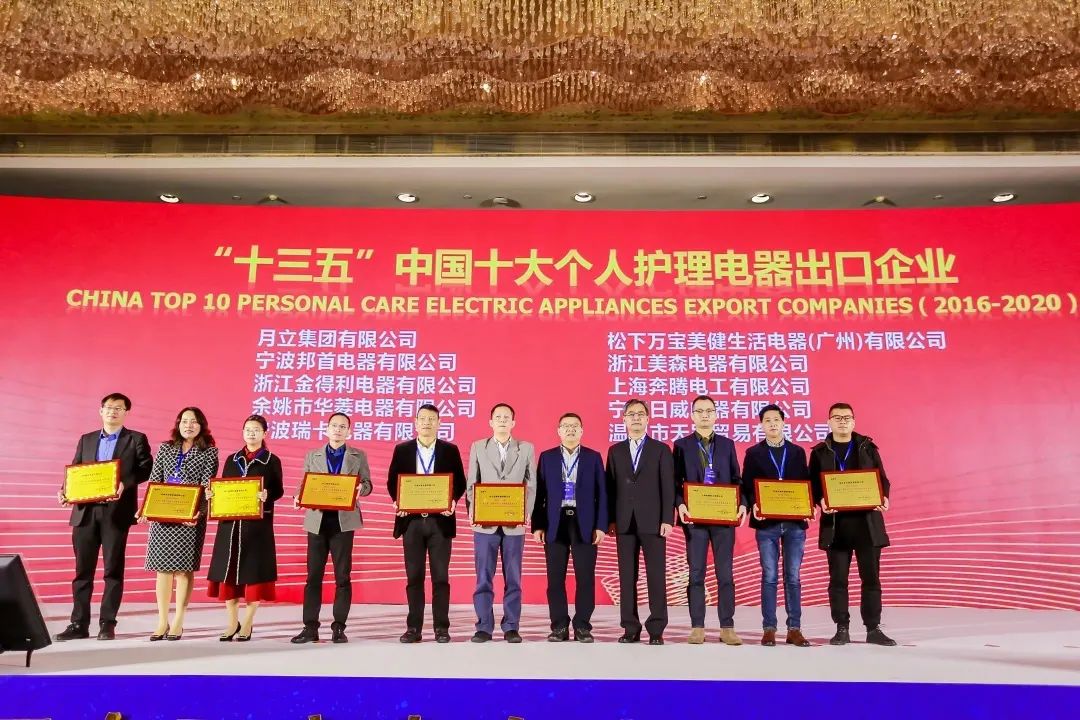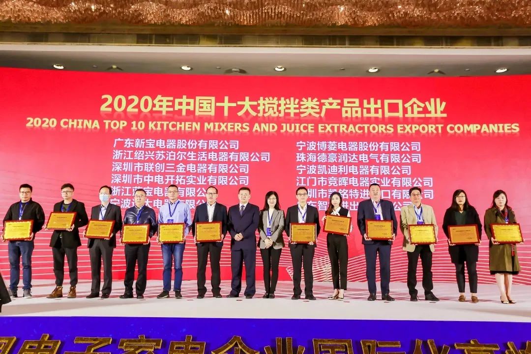 出口百强名单由机电商会按照行业与细分产品,根据出口额、贸易方式、销售规模等因素,结合企业参与行业活动、行业建设、维护行业秩序等情况综合评选。数据显示,在18个榜单206个席位中,我市企业占获奖总席位的18.9%,其中,在“十三五”10大类产品榜单中,我市企业上榜厨房小家电、冰箱冰柜、环境电器、个人护理电器和洗衣机5大类产品,获奖14席;在2020年8类细分产品榜单中,我市企业上榜电熨斗、烤面包机、搅拌机、吸尘器、咖啡机、电热水壶等6类产品,获奖25席;卓力和凯波分别包揽4个奖项,在电熨斗、烤面包机全国十强当中我市企业分别占据10席和7席。我市卓力、凯波等公司作为企业代表领取了电子信息、家电等细分行业的出口百强牌匾。