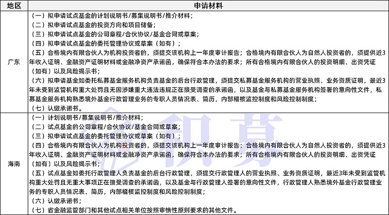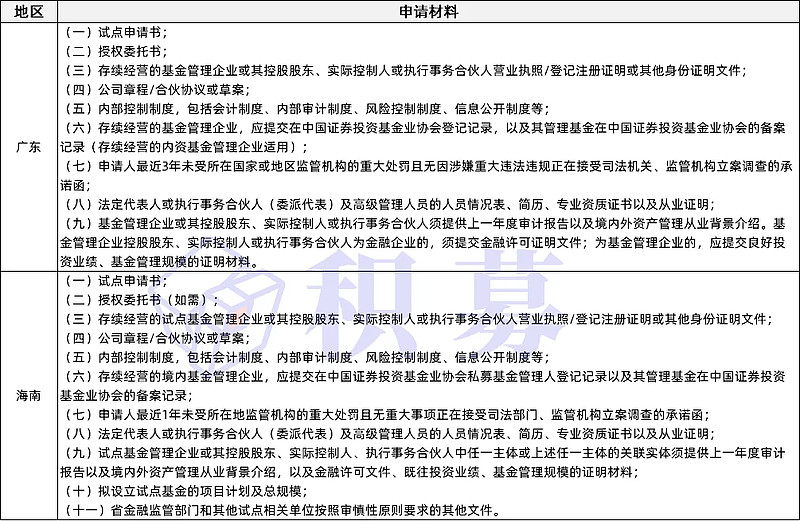 从各地的政策文件来看,QDLP试点基金管理人及基金的申请材料也大同小异,我们来看下广东和海南的,完整版可以在积募微信公众号后台菜单栏回复“QDLP”获取。