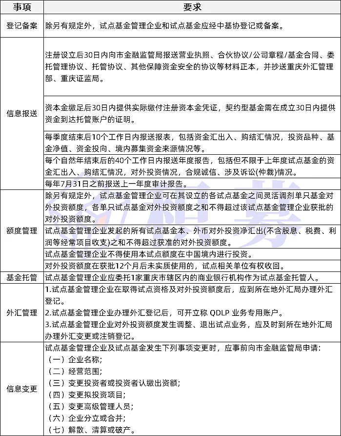 QDLP试点基金管理人、试点基金其他要求 - 重庆