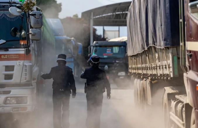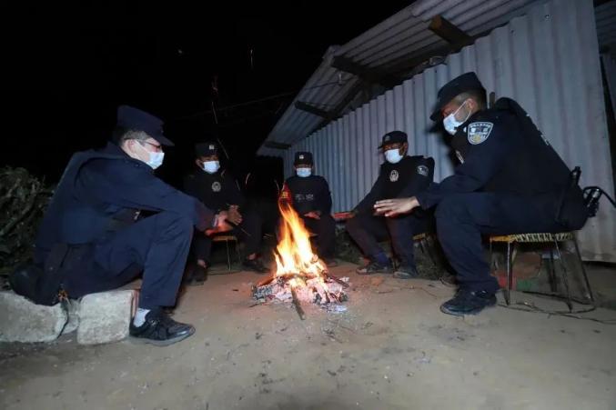 深夜,气温骤降,执勤点民警烤火取暖。李绍刚 摄