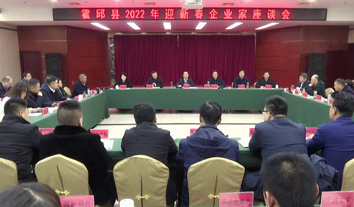 2022年 1月24日,我县召开2022年迎新春企业家座谈会,与会人员欢聚一堂,共叙友情、共迎新春、共谋发展良策。县委书记李煜,县长韦能武,县人大常委会主任王俊,合霍现代产业园党工委书记、管委会主任傅壮等出席会议,30家企业代表以及相关部门负责人参加座谈会。