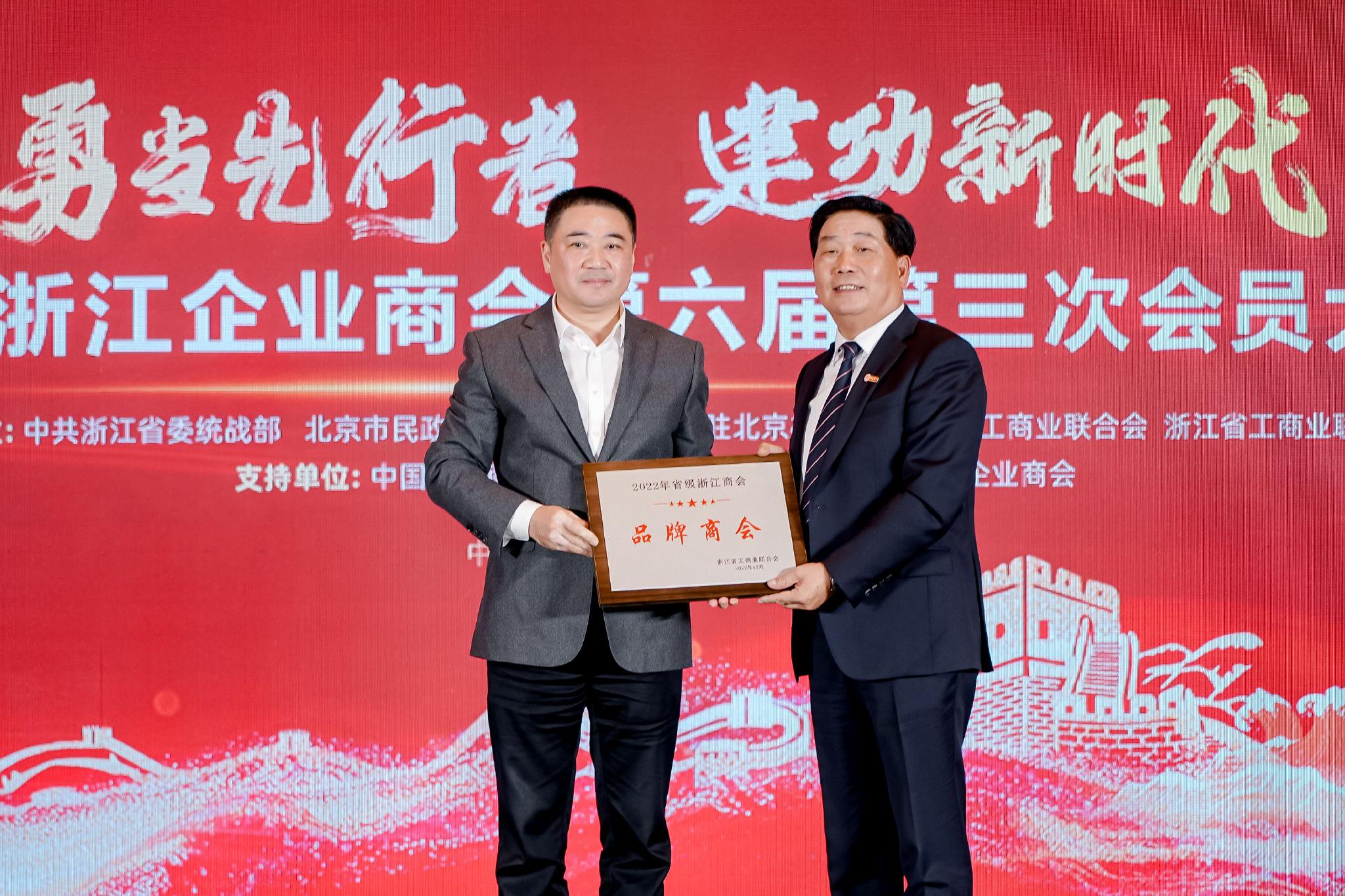 北京浙江企业商会成立于2001年3月,是全国最早的省级异地商会,也是全国最早成立的第一家省级浙江商会。会上,北京浙江企业商会获颁浙江省工商联颁发的“品牌商会”荣誉称号。而这,已是商会连续三年获得“品牌商会”荣誉称号了。