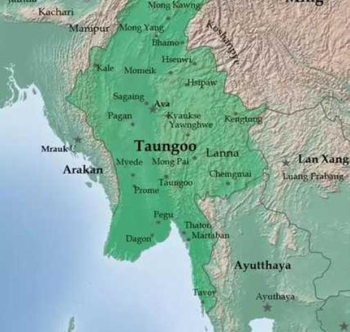 1785年,当时的阿拉干王国已经衰败不堪,内部斗争不断,外部受葡萄牙人的入侵威胁。阿拉干王国的臣工眼见国家难以为继,便请求归入缅甸王国。阿拉干王国被缅甸王国吞并,成为了缅甸的一部分,这就是今天若开邦的来源。