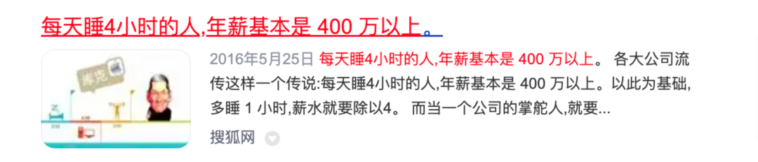 江湖上也流传着许多「成功人士不需要睡觉」的传说。从拿破仑、雍正皇帝、彼得大帝、撒切尔夫人,到一众科技新贵,再到「每天睡 4 小时的人,年薪基本是 400 万」的职场毒鸡汤……