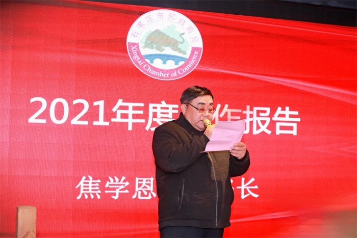 会议开始,石家庄市邢台商会秘书长焦学恩代表石家庄市邢台商会作2021年工作报告,报告指出过去的一年,石家庄市邢台商会在市工商联、市民政局的指导下,严格遵守社会组织规章制度,按照全国“四好商会”要求,合力创新,提升服务,打通商会企业间内循环,着力做了八项工作:一提高政治引领,加强党建学习;二坚持以人为本,提升商会服务职能;三提升责任意识,积极参政议政;四首创社会组织先河,在省、市总工会相关领导指导下成立石家庄市邢台商会工会联合会;五加强城市交流,促进招商选资;六加强舆论宣传,提升商会美誉度;七积极参与公益活动,履行社会职能;八与时俱进,抓好商会自身建设。
