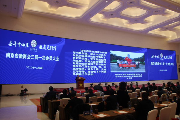 129日下午,南京市安徽商会在南京白金汉爵大酒店举行第三届第一次会员大会暨成立十周年庆典。市委统战部副部长、市工商联党组书记丁铭应邀出席大会并讲话。原安徽省副省长、人大常委会副主任吴昌期,原南京军区副参谋长张中华将军,兄弟商会代表及全体会员参加会议。