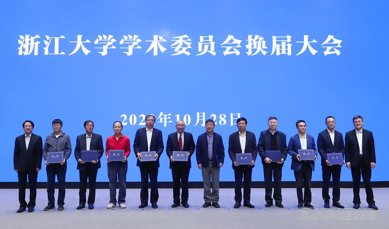 10月28日,浙江大学学术委员会换届大会在紫金港校区举行。校党委书记任少波、校长吴朝晖代表学校向新一届校学术委员会委员颁发聘书。副校长周天华主持会议,校党委副书记傅强、副校长李晓明出席会议。