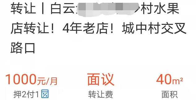 上网查了下,附近一家水果店刚好放租,面积差不多,租金是1000元/月。