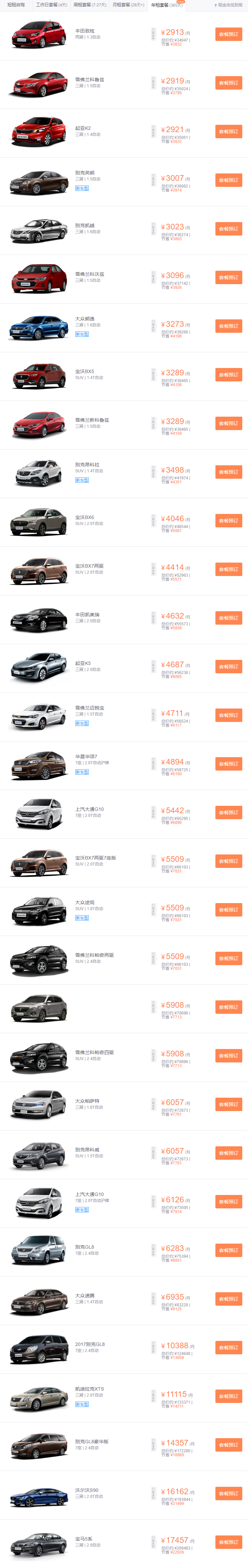 长期租车对于短租来说,好处就是价格上会有一定的优惠,租车平台或租车公司会给予一定的折扣,以目前国内较大的两个租车平台(神州、一嗨)为例,看看这两个主流平台的长期租车价格。