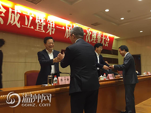 市领导为首任会长朱忠明和首任执行会长郑邦良授牌
