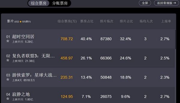《游侠索罗》不敌《超时空同居》和《复仇者联盟3》位居内地排行榜第三位