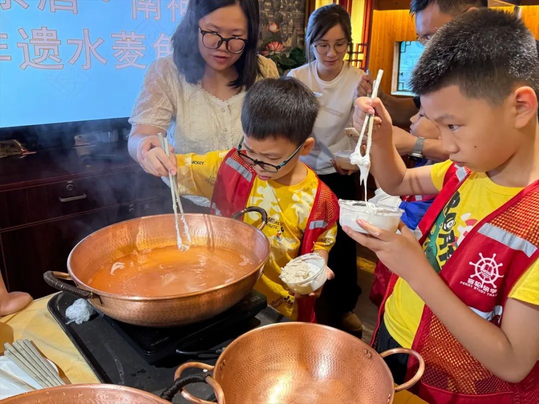 来到南海神号上,孩子们一边欣赏珠江美景,一边品尝地道正宗的粤式点心,制作手工水菱角、手工漆扇DIY,参观海上丝绸之路博物馆。