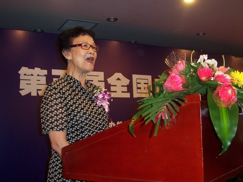图为河南省商业行业协会会长张慧玉在会上致辞中