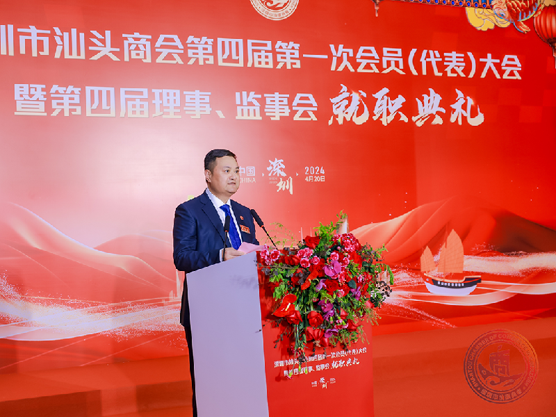 今日,我们站在汕头商会发展的新起点上。在全体会员的支持与信任下,我很荣幸地连任第四届理事会会长,这既是崇高荣誉,也同时承载着沉甸甸的责任。新时代赋予我们新的使命与担当,在未来的征程中,我们将与全体成员携手,继续弘扬商会的优良传统,不断创新发展理念,努力实现更高层次、更大规模的合作与发展,引领汕头商会迈向更加辉煌的未来。