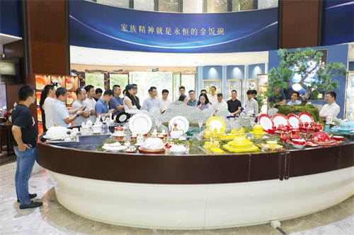 在工作人员的引领下,潮青一行参观了国瓷博览馆,了解国瓷永丰源的发展历史和产品特色,着重听取了国瓷永丰源研发生产“国宴瓷、国礼瓷”系列产品的情况介绍。据悉,国瓷永丰源发轫于清乾隆年间,至今已传承至第六代,是一家集研发、设计、生产、营销、瓷文化传播为一体的综合性全产业链陶瓷企业。国瓷博览馆面积约3000平方米,是国瓷永丰源对外的重要品牌形象窗口,是集瓷器设计、技术、工艺为一体的展览展示馆,也是传播当代瓷文化的重要平台。潮青们在博览馆内赏美瓷、闻瓷音,沉浸式感受瓷文化,体验了一场穿越千年瓷文化精髓的创意之旅。
