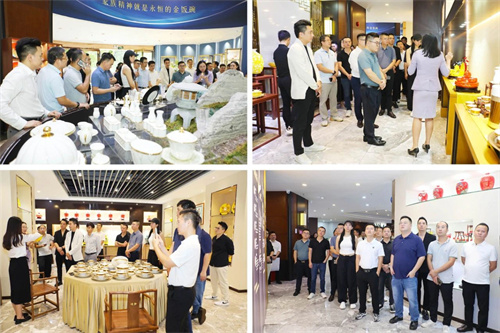 2024年9月25日下午,深圳潮青商会代表团走进龙华区德胜昌大厦国瓷永丰源博览馆参观并举行交流座谈会,受到国瓷永丰源商学院院长、集团副总裁郭京洲,副总裁刘美足和集团工会副主席、大渠道事业部总经理邹惠红等的热情接待。双方就国瓷永丰源坚守传承、坚持创新,推动企业高质量发展的运营管理经验等进行交流探讨。