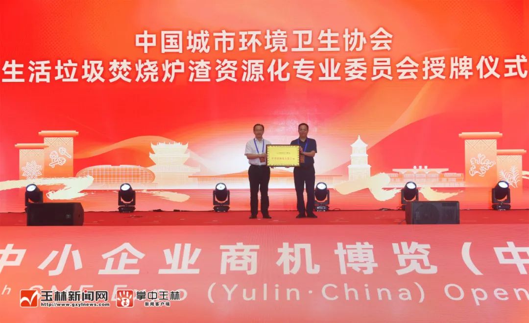 中国城市环境卫生协会生活垃圾焚烧炉渣资源化专业委员会授牌。