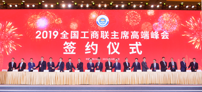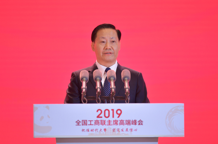10月10日上午,以“把握时代大势·坚定发展信心”为主题的2019全国工商联主席高端峰会在成都举行。来自全国工商联和各省(区、市)工商联的代表、省内外知名民营企业家等500多名嘉宾齐聚一堂,共谋民营经济健康发展大计,共享新时代四川发展机遇。全国政协副主席、全国工商联主席、中国民间商会会长高云龙出席峰会并讲话,省委书记、省人大常委会主任彭清华致辞,中央统战部副部长、全国工商联党组书记、常务副主席徐乐江主持峰会。省政协主席柯尊平出席。