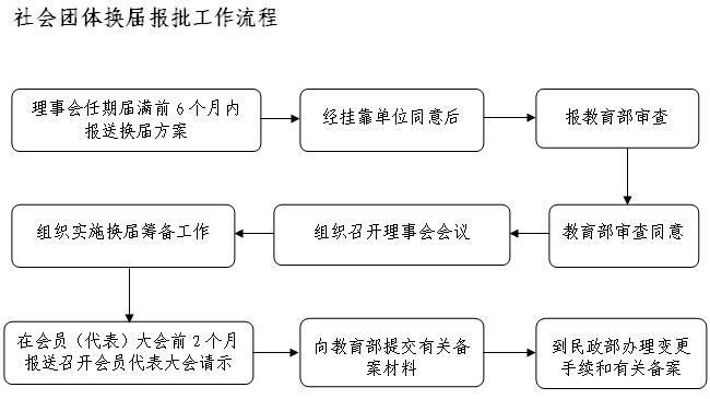 注:上述材料在审查通过后应及时报挂靠单位、教育部和民政部备案。