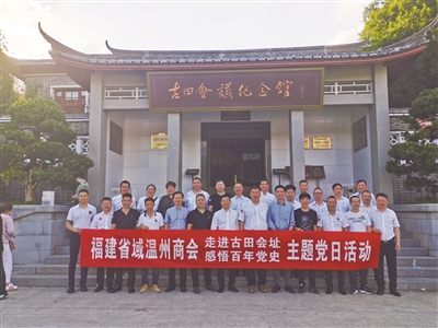 5月15日,福建省域温州商会组织10多位党员,来到福建省龙岩市古田会议会址开展“走进古田会址,感悟百年党史”主题党日活动,实地感受红色文化,重温革命历史。在古田会议会址前方,中共温州市在闽温州商会工作委员会书记冯易乐带领党员们进行庄严宣誓,重温入党誓词。