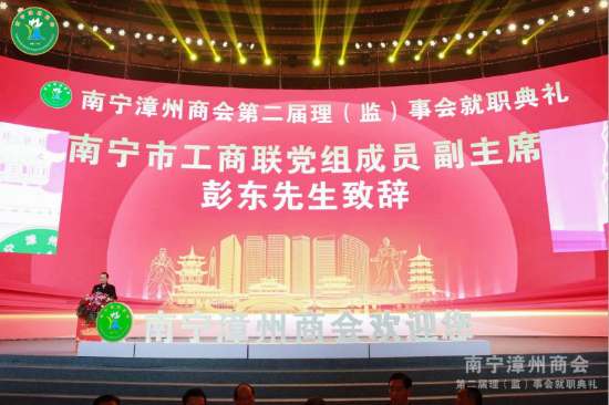 随后,南宁市工商联副主席彭东上台致辞。彭副主席表示工商联作为南宁漳州商会的上级主管部门,一直关心、关注、支持南宁漳州商会,同时也对新一届领导班子表示期许,祝愿南宁漳州商会在新的时代征程上越来越出彩。