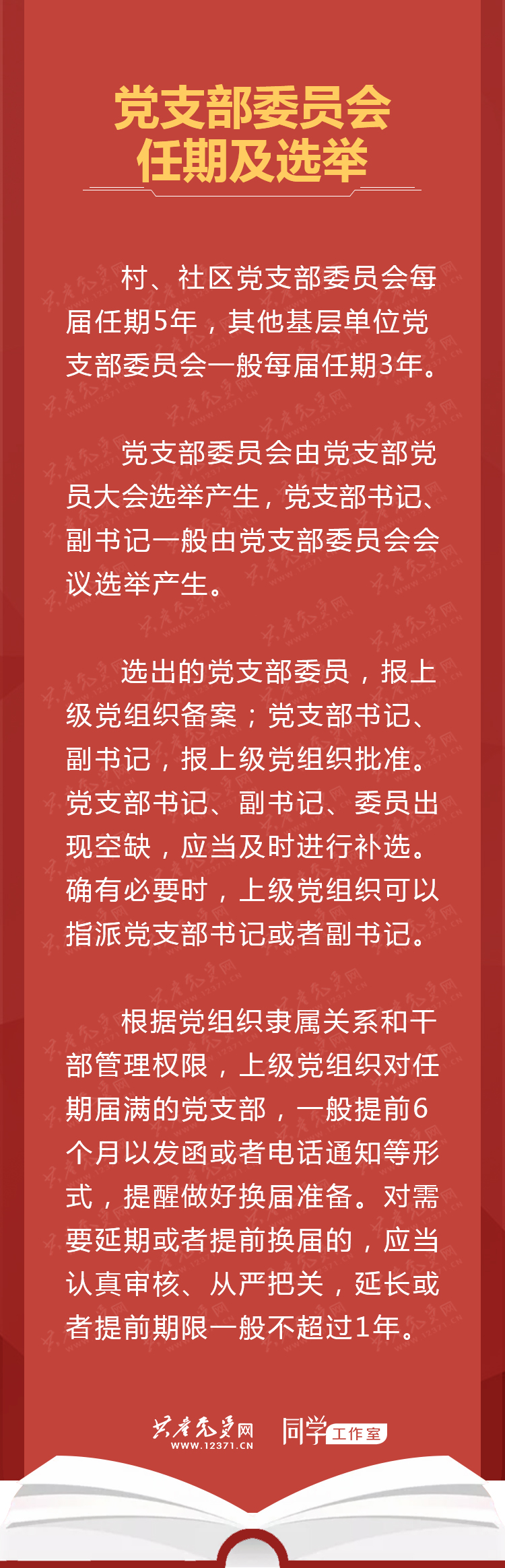 村、社区党支部委员会每届任期5年,其他基层单位党支部委员会一般每届任期3年。
