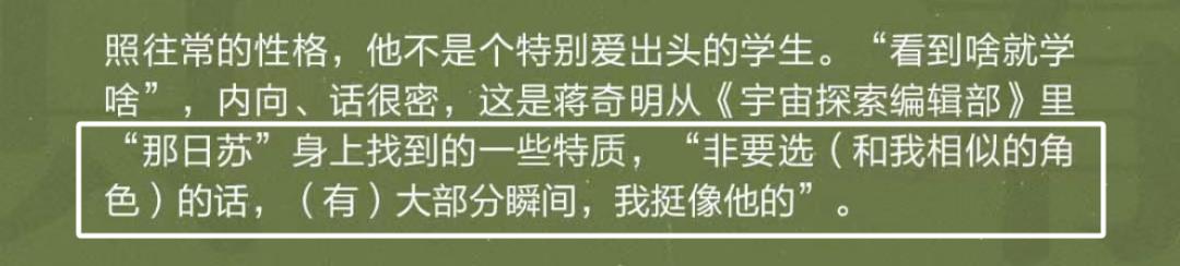 比如蒋奇明自己说和自己最像的角色,《宇宙探索编辑部》里的内蒙小伙儿那日苏。