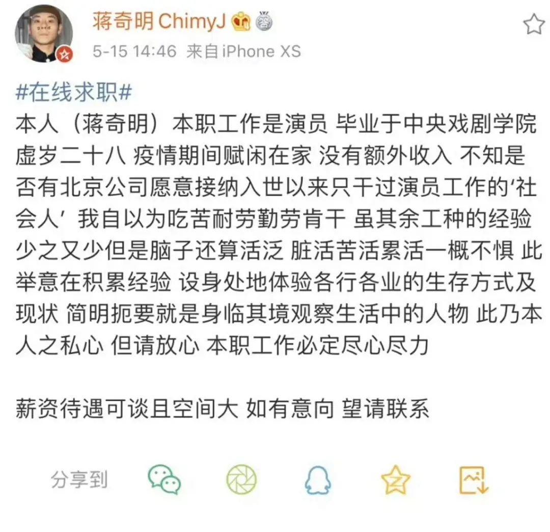 从中戏毕业后,他投身话剧音乐剧,2020年没工作了还曾在网上公开求职,也差不多是这时候,开始大量进组拍戏,在观众面前频频刷脸。