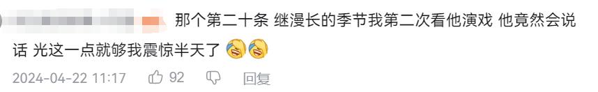 这样一个简单的单人切片收获高赞,有人留言说“蒋奇明应该做一次王家卫的男主”,也会有人质疑他不是男主脸。