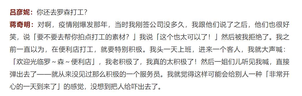 巧的是,蒋奇明还真在罗森便利店干过。