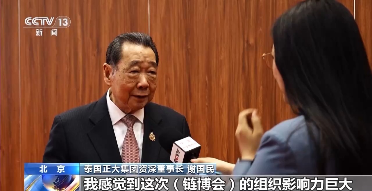 泰国正大集团资深董事长谢国民:我感觉到这次链博会的组织影响力巨大,共商共建共享,你有好处,我也有好处,不是单向。