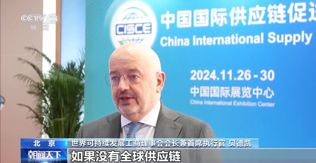 世界可持续发展工商理事会会长兼首席执行官贝德凯:如果没有全球供应链,世界将会大不相同。中国作为众多供应链的关键一环,我们继续合作的重要性不言而喻。