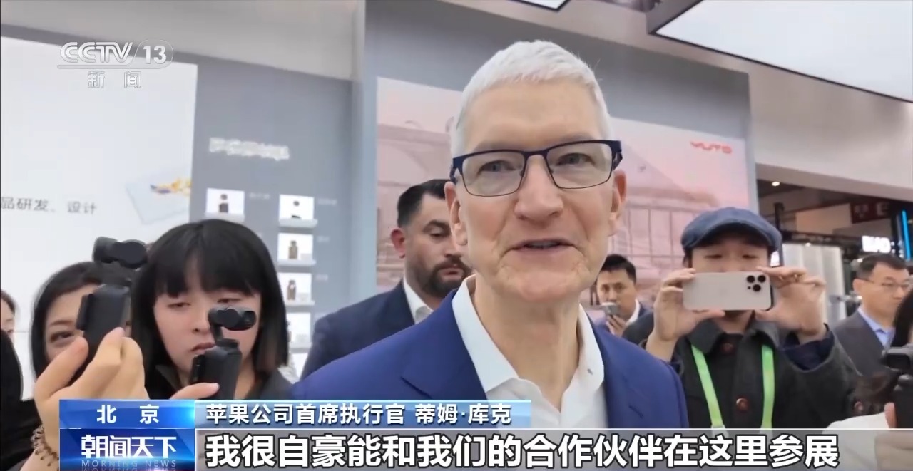 苹果公司首席执行官蒂姆·库克:我很自豪能和我们的合作伙伴在这里参展,我认为这是一个成功的展会,激发创新的动力。我非常重视中国的合作伙伴,如果没有中国的合作伙伴,我们无法取得今天的成就。