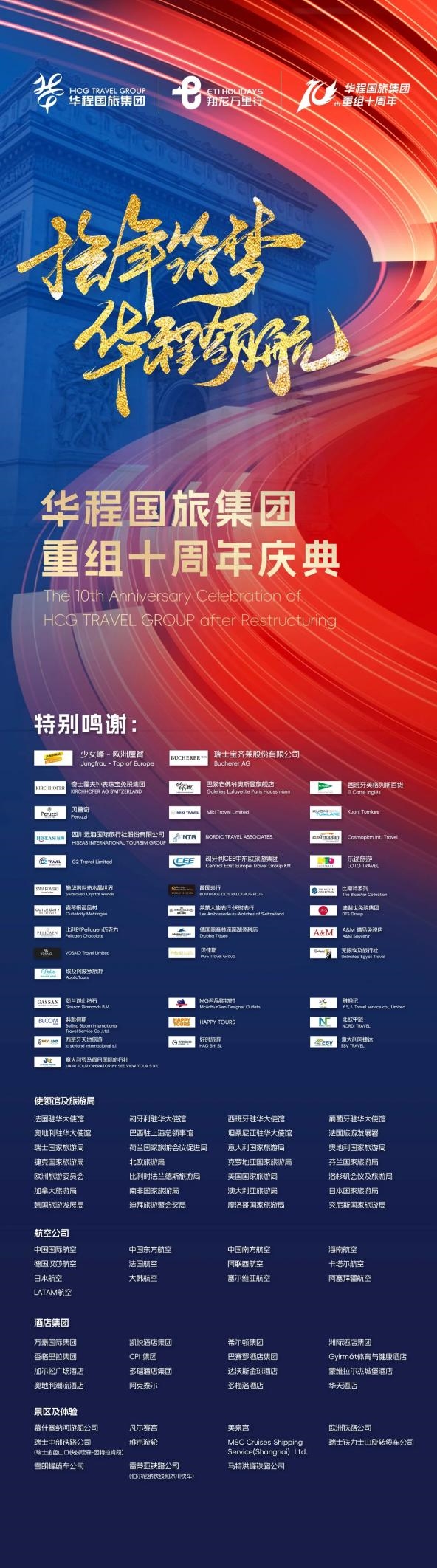“让我们铭记重组十年来坚强而光辉的岁月,从容迎战如今复杂而巨变的旅游市场,开创下一个属于华程人的十年勇敢征程。时间已经证明并将继续证明,华程国旅集团值得期待,华程国旅集团海内外团队值得信任。”