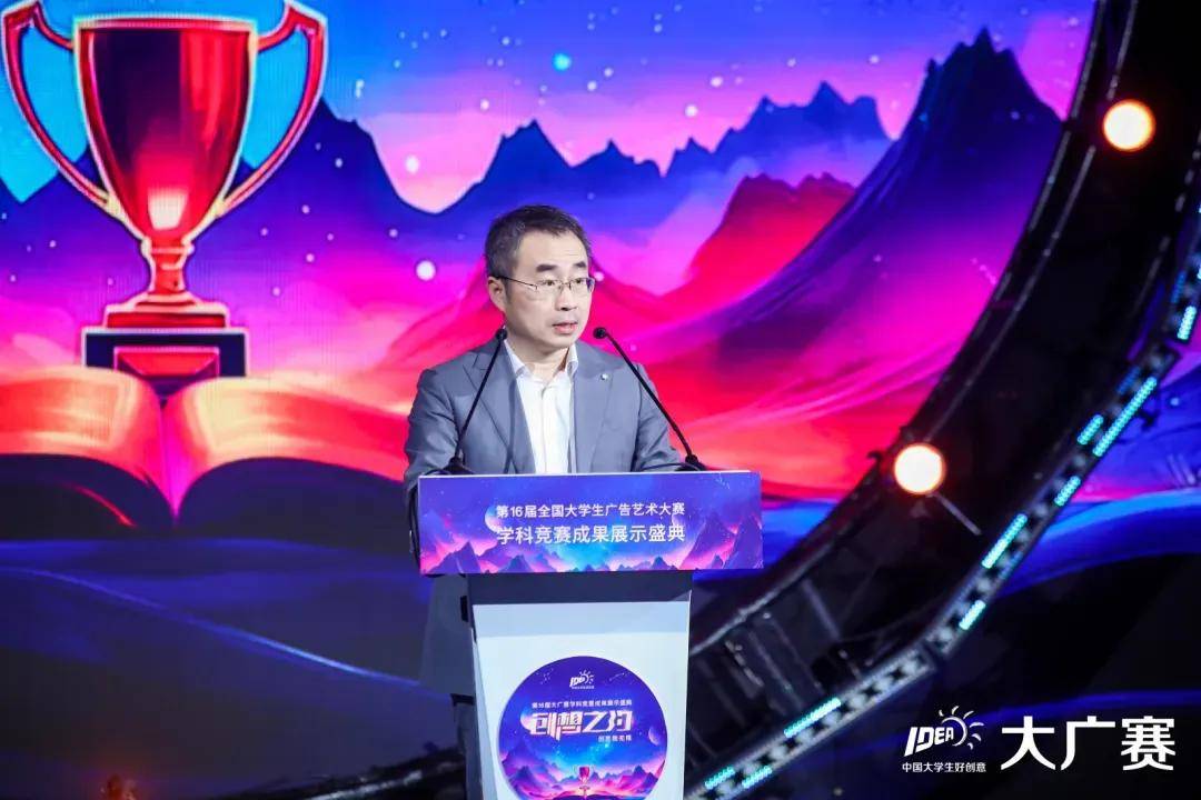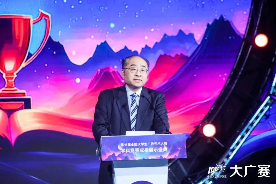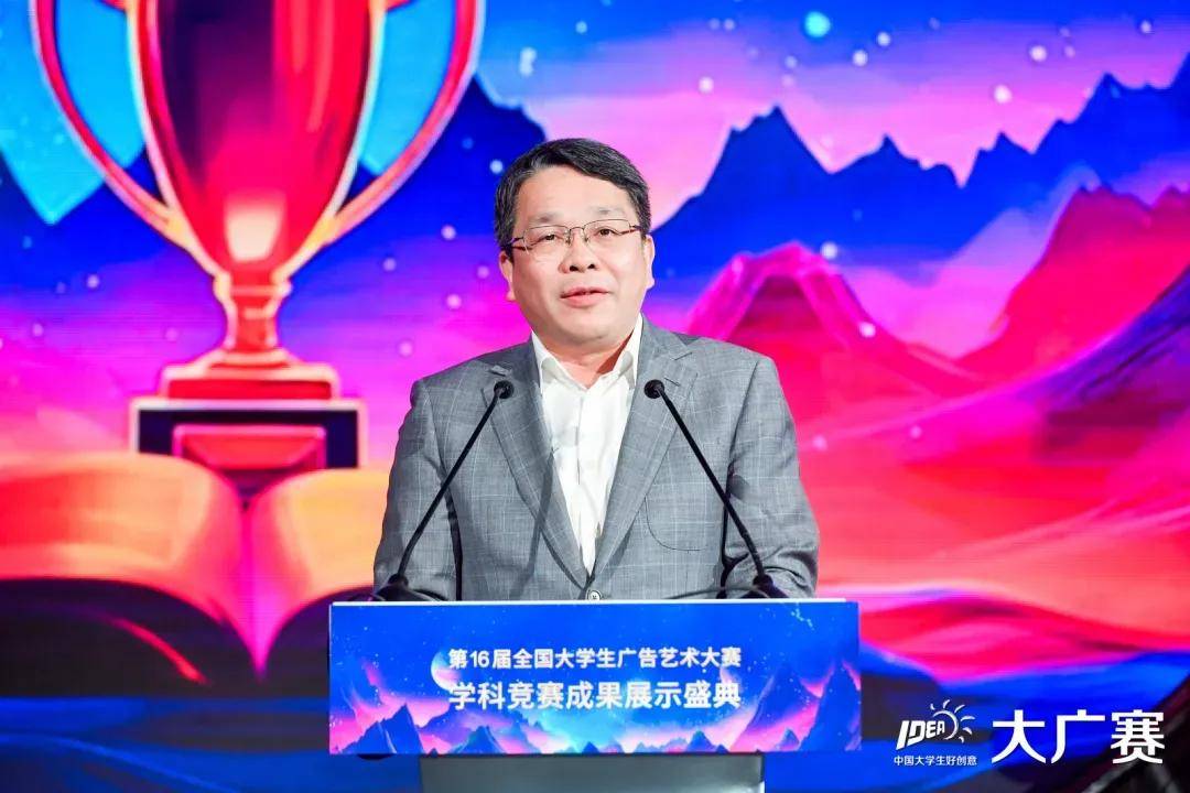 王雪涛主任在致辞中提到,面对教育理念的变革,大广赛积极探索复合型广告人才培养模式,推动实践教学改革,铸就了竞赛品牌的深厚底蕴。他提出了三点希望:一是希望大广赛继续创新引领,拓宽实践探索渠道;二是希望赛事在未来发展中能够不断突破,再创佳绩;三是希望老师们继续坚守教育初心,为广告行业培养更多具备创新精神和实践能力的优秀人才。最后,王雪涛主任鼓励同学们借助科技手段传达人文精神,用创作展现青春风采,并期待大广赛继续保持砥砺品格,为教育事业的蓬勃发展贡献力量。