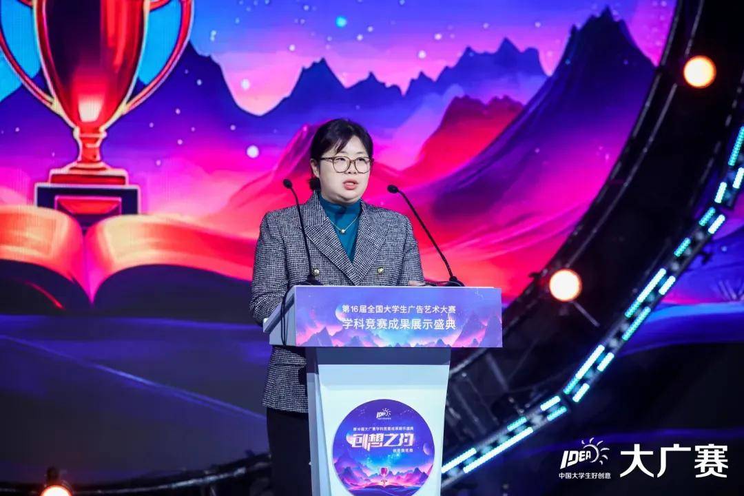 择高而立,再攀新高。回顾第16届全国大学生广告艺术大赛,这场汇聚了无数青年澎湃激情的创意盛宴,不仅展现了青年学子的博学笃行与创新竞进,更承载了千万年轻人对广告艺术的热爱与追求。经过数月的激烈角逐与精心筹备,终于迎来了收获的时刻——第16届大广赛学科竞赛成果展示盛典于11月23日在北京东亿国际传媒产业园演艺大楼隆重举行。全国人大代表、中国戏剧家协会副主席、国家一级演员、再芬黄梅艺术剧院院长韩再芬、中国高等教育学会副会长、教育部高教司原司长张大良、教育部学生服务与素质发展中心党委书记、主任刘玉光、中国高等院校影视学会副会长兼秘书长张国涛等嘉宾出席活动。现场共颁发了全国一等奖、二等奖、企业奖、优秀指导教师、优秀院校、广告艺术教育改革推动奖等二十余项奖项,30位命题单位嘉宾,以及来自全国301所院校的近1700名师生到场参会。本次活动由中国传媒大学、全国大学生广告艺术大赛组委会、大广赛文化传播(北京)有限公司联合共同举办,大广赛文化传播(北京)有限公司承办。