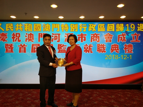 应澳门河源市商会邀请,12月1日至2日,河源市侨联副主席邓谷香率团前往澳门,参加澳门河源市商会就职典礼联欢晚会并拜访该会。中联办协调部副处长冯明才、河源市委统战部常务副部长邱志军、河源市工商联副主席朱明敏、香港龙川同乡会创会会长叶柏明等参加就职典礼联欢晚会。