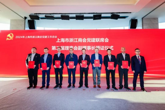 在随后举行的2024年上海市浙江商会党建工作会议上,新一届党委班子集体亮相。同时亮相的还有党建联席会第二届理事会成员代表,会上为名誉理事长陈爱莲、理事长潘建清、轮值理事长范永进及副理事长代表授证。