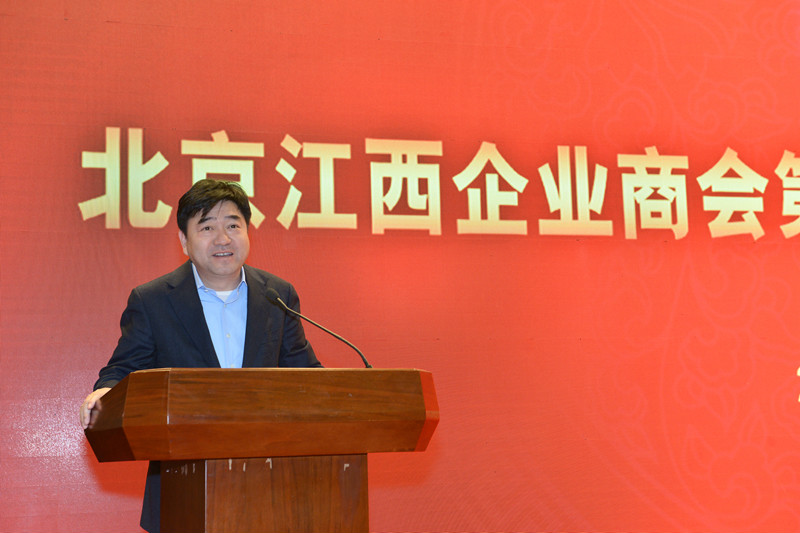 江西省委常委、省委统战部部长陈兴超在大会上作了讲话。他表示,在全体会员的共同努力下,近年来北京江西企业商会各方面工作都取得了令人瞩目的成绩:自身建设有新发展,社会影响有新突破,回报家乡有新成果。当前,江西省立足特色优势,准确把握新经济发展的新趋势,聚焦重点精准发力,提出四大主攻方向,打造出新的动力引擎,即“新制造经济”、“新服务经济”、“智慧经济”和“分享经济”。期待在京赣商和广大关心江西发展的企业家抓住机遇,发挥优势,进一步支持江西、推介江西、投资江西,共同打造美丽中国的“江西样板”。并希望在京赣商争当江右商帮精神的传承者,争当新经济的引领者,争当回报家乡的践行者。