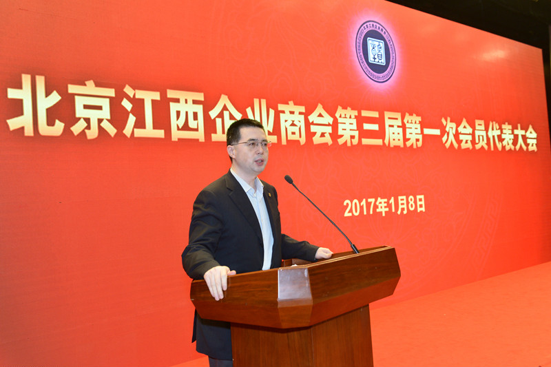 2017年1月8日,北京江西企业商会第三届第一次会员代表大会在京召开。江西省委常委、省委统战部部长陈兴超,江西省委原书记舒惠国,国家统计局原局长李德水,北京市投资促进局局长周卫民,中国人民大学党委常委、副校长吴晓求,江西省政府副秘书长、驻京办主任江枝英,江西省委统战部副部长、省工商联党组书记李青华,北京市工商联党组成员、副主席赵秀德,江西省商务厅副厅长陶莉萍,北京市民政局社团管理处处长韩磊,以及全国工商联第九届副主席、赣商联合总会会长、科瑞集团董事局主席郑跃文,全国工商联第十届副主席、用友集团董事长王文京等近500位在京赣商企业家出席会议。