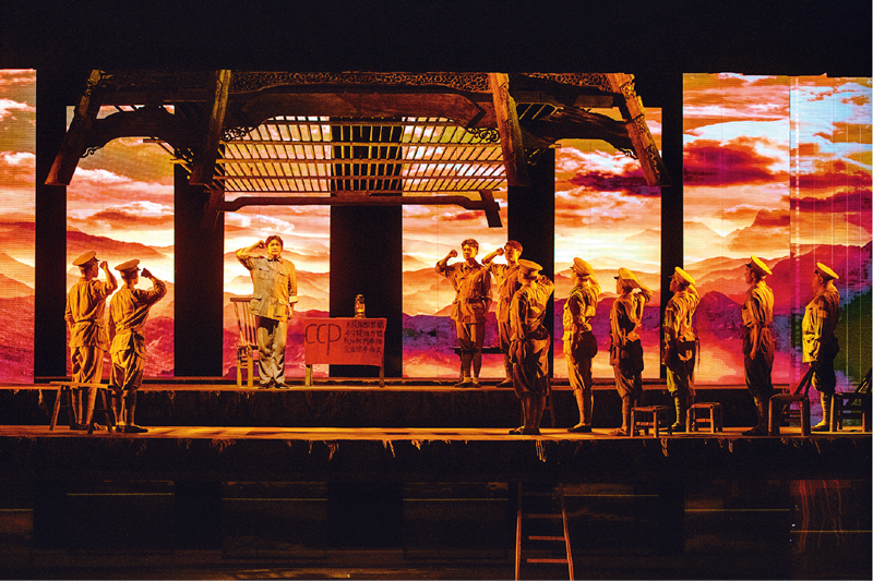 1927年9月,毛泽东同志率领湘赣边界秋收起义部队到达江西省永新县三湾村,进行了著名的三湾改编,创造性地提出和建立“支部建在连上”的原则和制度。图为江西省话剧团编排的大型话剧《支部建在连上》剧照。 江西省委组织部供图