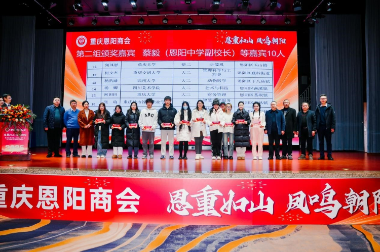本次活动的重头戏是“恩情基金”颁发仪式。40名恩阳籍在渝优秀大学生获得“恩情基金”助力。重庆市工商联副主席王进,华龙网监事会主席张德泽,重庆商务职业学院院长陈忠飞,重庆市农业科学院副院长张贵先,巴中市政府驻重庆办事处党组书记、主任杨亭,恩阳中学副校长蔡毅,茶坝中学校长易坤,恩阳区工商联党组成员贺小林等40名嘉宾为学子们送上了关怀和祝福。